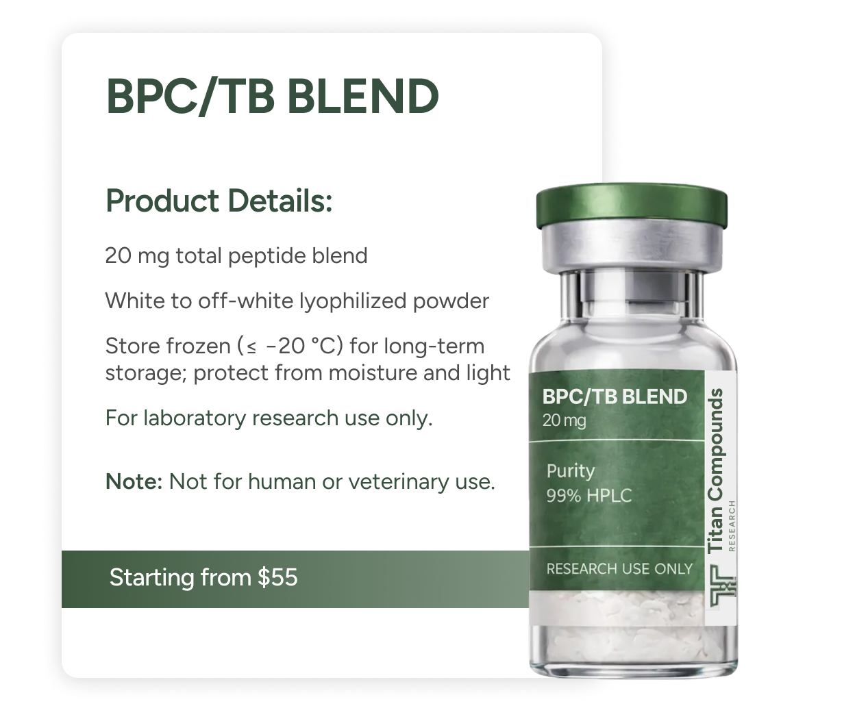 BPC-157 is a 15-amino-acid peptide originally derived from a protein in gastric juice. It is investigated for its pro-healing effects on various tissues, including tendon, muscle, and the gastrointestinal tract. In research models, BPC-157 has shown angiogenic and cytoprotective properties, making it a candidate for studies on wound healing, ulcer repair, and inflammatory modulation.