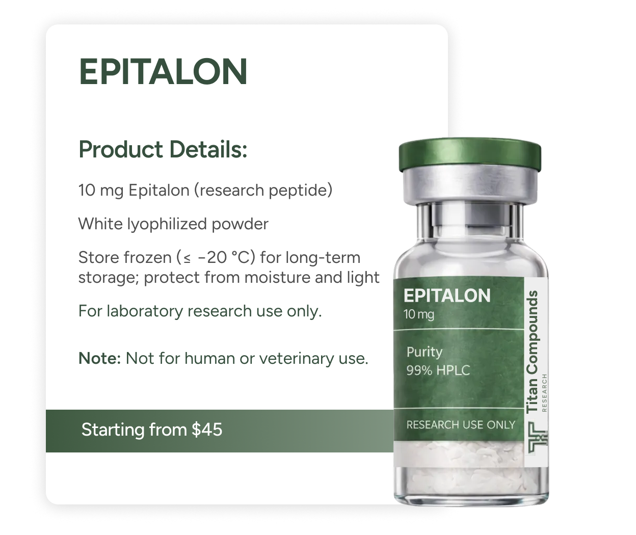 ● Contents: 10 MG Epitalon (research peptide)
