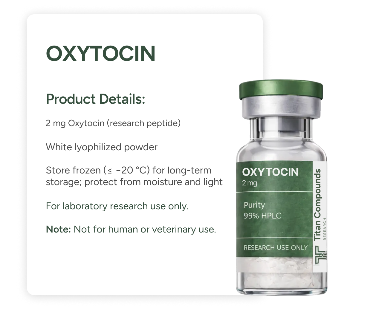Description: Oxytocin is a cyclic nonapeptide neuroendocrine hormone containing an intramolecular disulfide bond and acting via the oxytocin receptor (OXTR). In research settings, oxytocin is used to investigate OXTR-mediated signaling in the central nervous system and peripheral tissues, including experimental studies relevant to reproductive physiology, stress-response pathways, and social-behavior neurobiology in cellular and animal models.